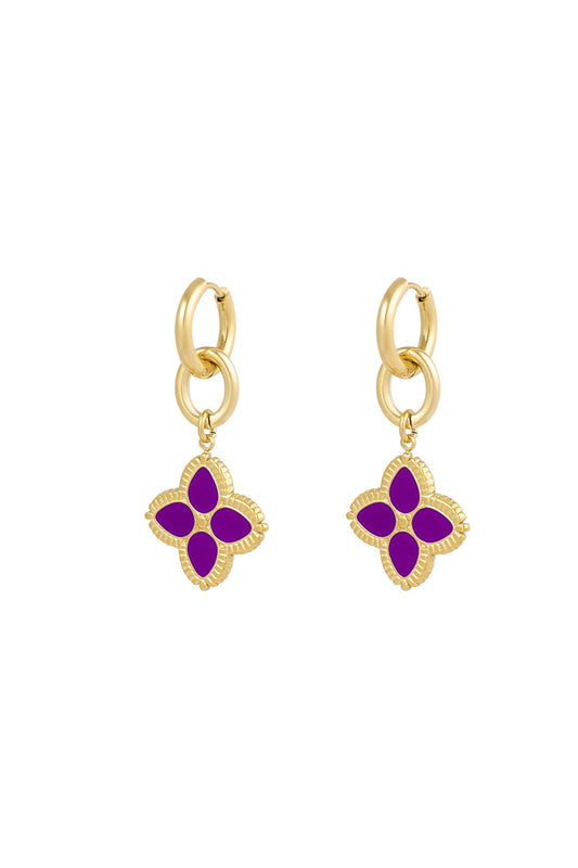 AanbiedingOorbellen rechthoek met paarse kralen - Goud