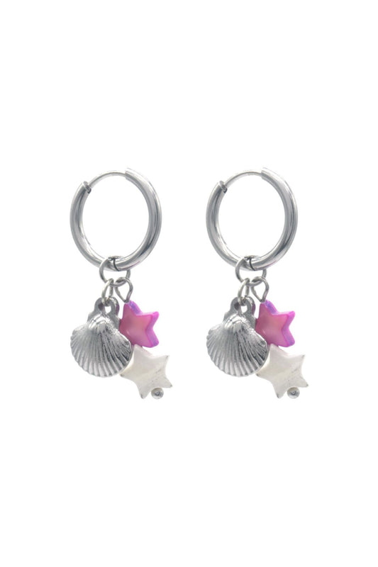 AanbiedingOorbellen met schelp en sterren - Zilver