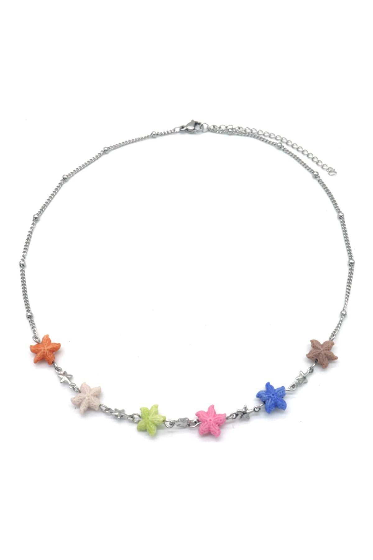 Ketting met gekleurde zeesterren - Zilver